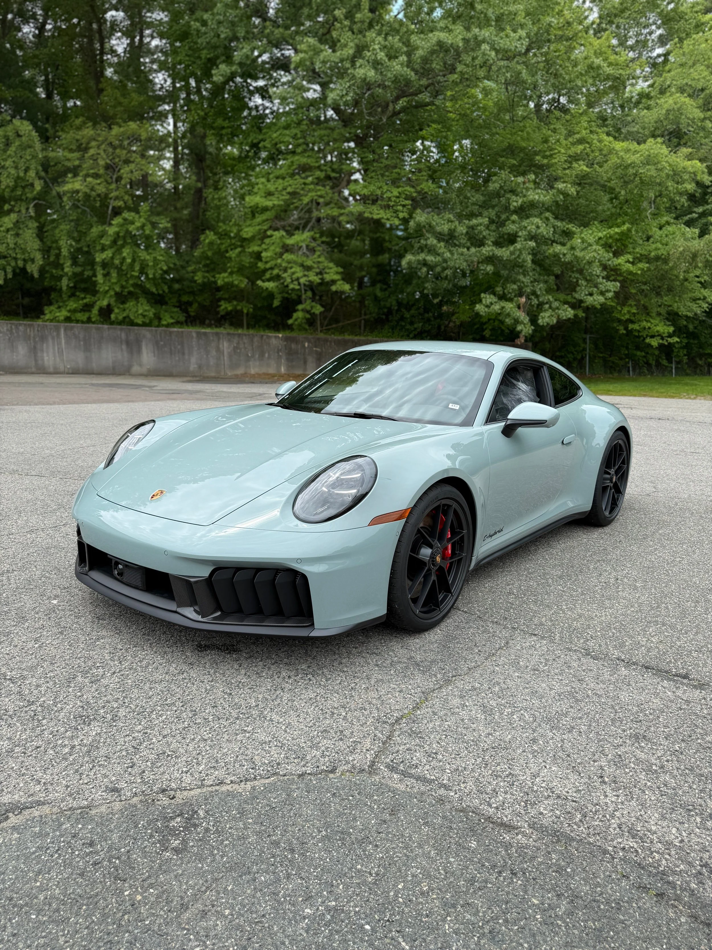 Silver Mercedes-Benz parked on a driveway in front of a beige two-story house with a porch.
