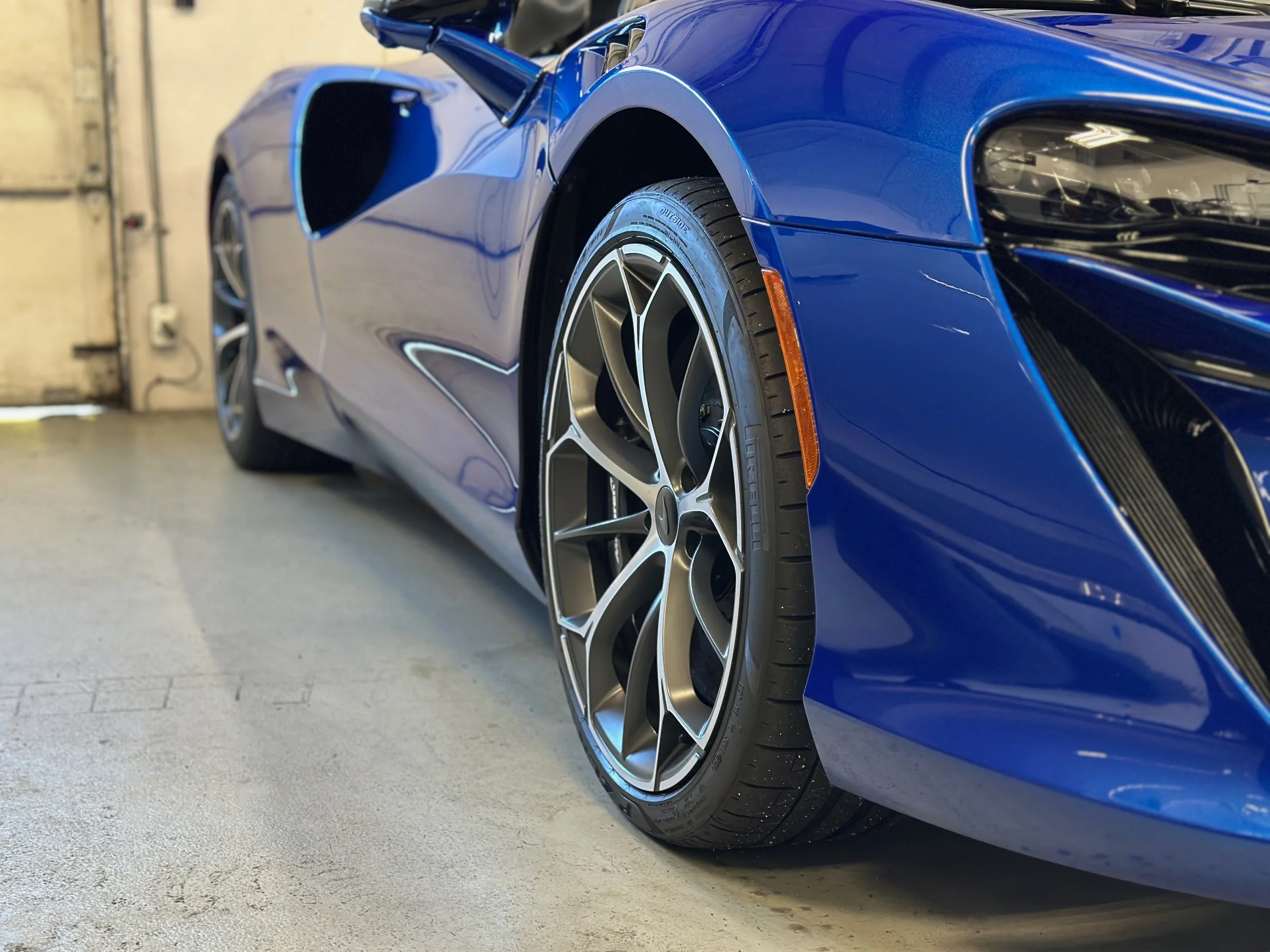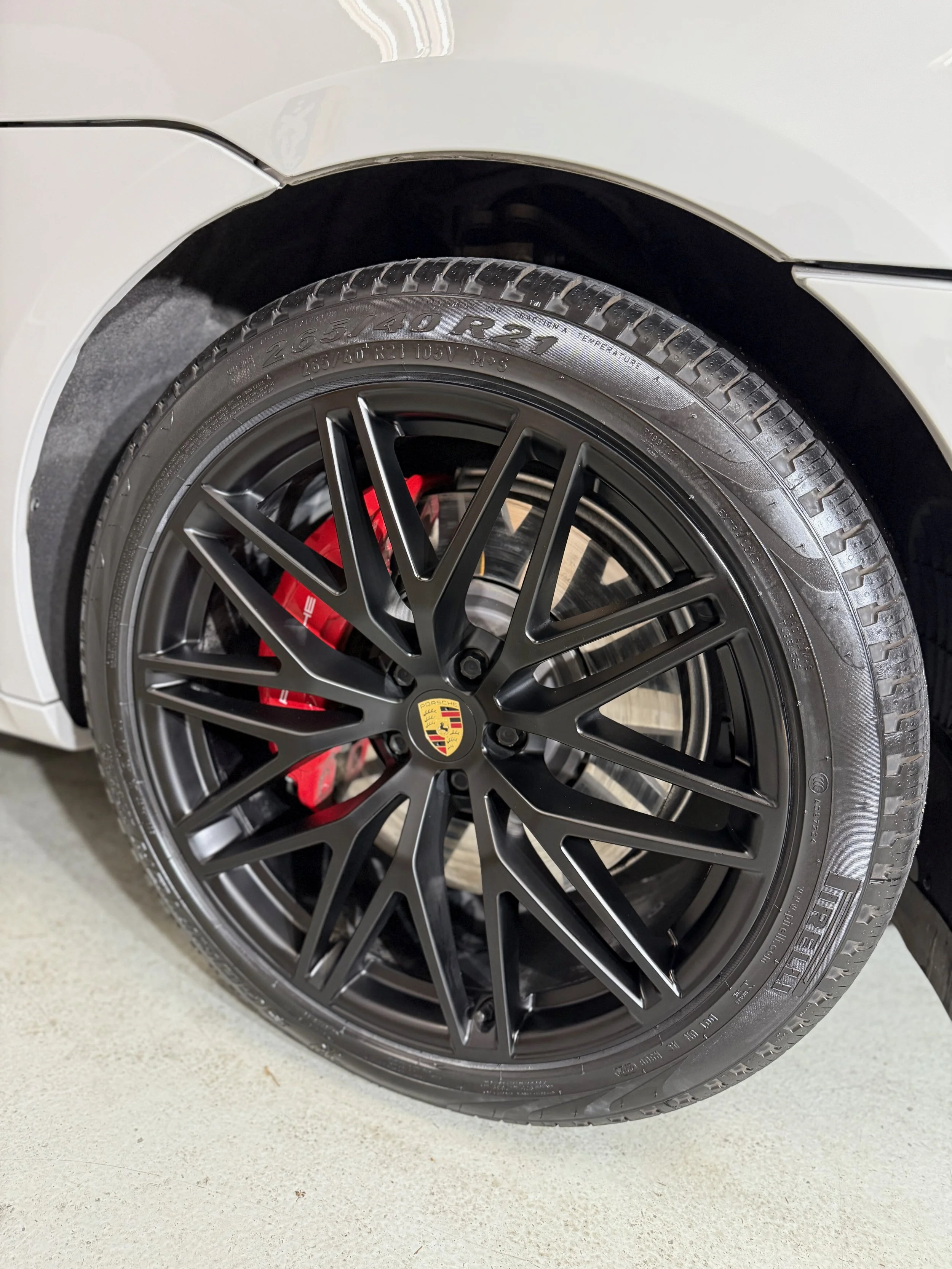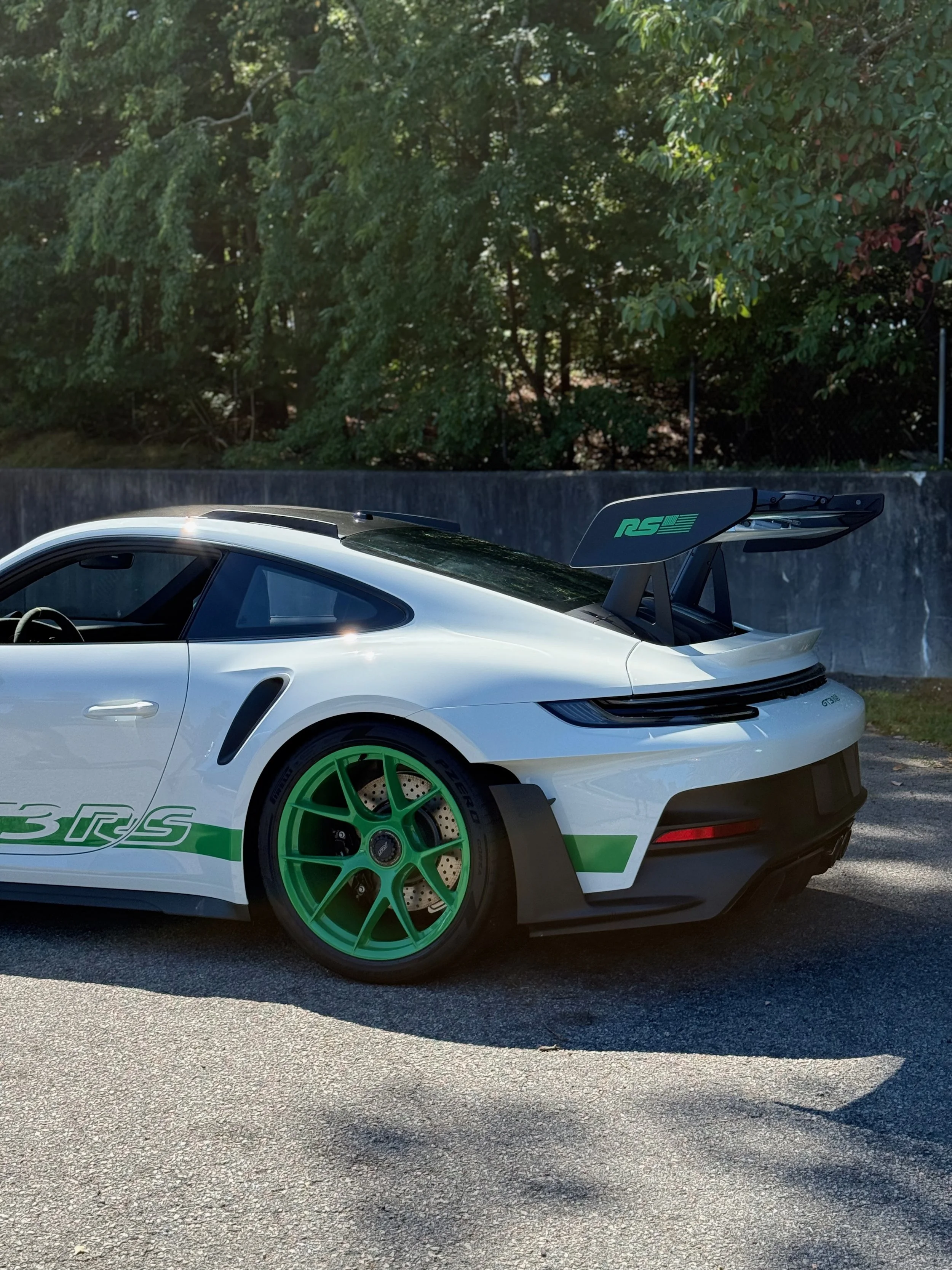 White luxury sedan with sleek design and alloy wheels parked on pavement